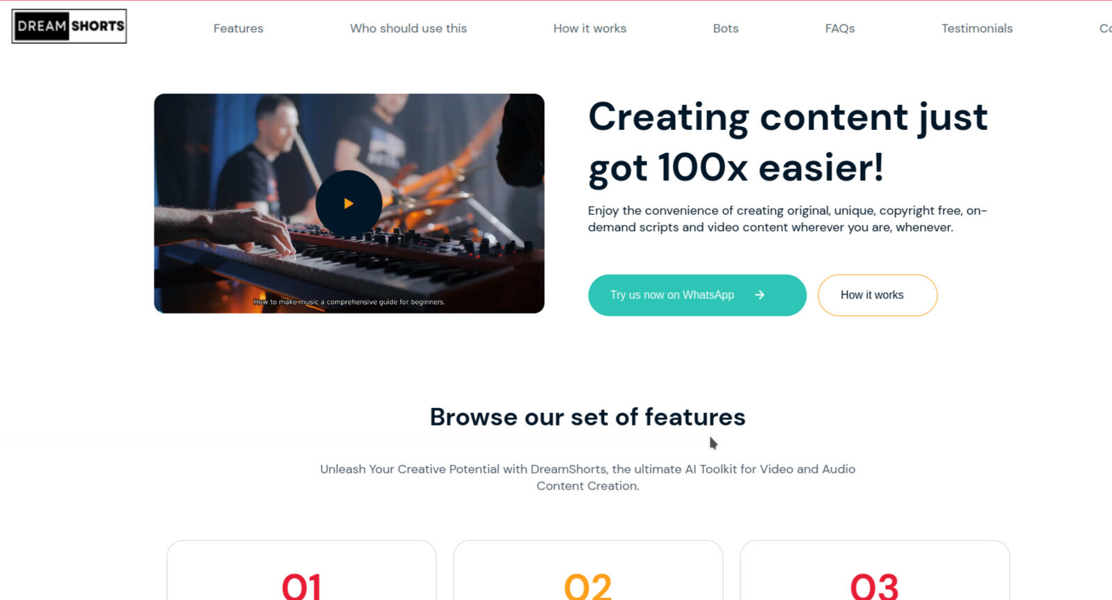 DreamShorts is an AI platform that automates content generation processes. It includes a chatbot on WhatsApp and Telegram that generates various types of content, such as articles and video scripts. The platform utilizes AI to transform these scripts into visually appealing videos with high-quality voice-overs, constantly evolving based on user feedback.